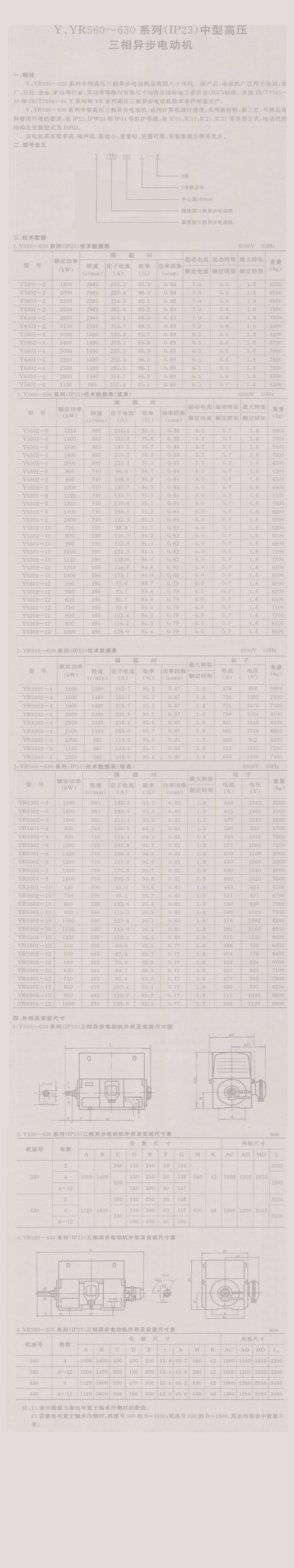 Y、YR560-630系列(IP23)中型高壓三項異步電動機