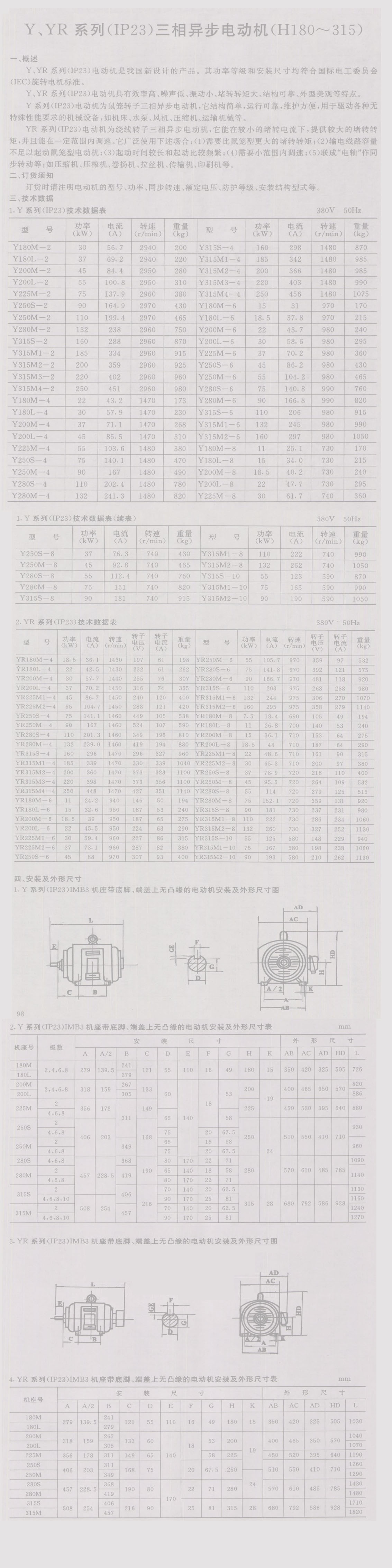 Y、YR系列(IP23)三相異步電動(dòng)機(jī)(H180-315)