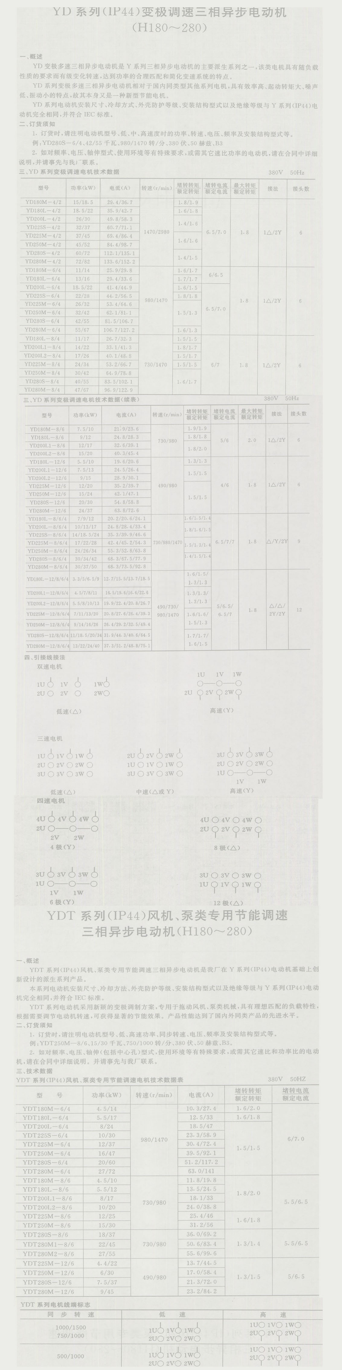 YD系列(IP44)變極調(diào)速三相異步電動機(jī)